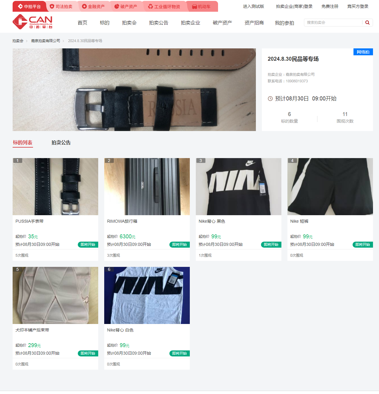 ![]() 嘉泉拍卖有限公司拍卖公告 受委托,我司在“中拍平台”(paimai.caa123.org.cn)拍卖: 2024年8月30日上午9:00拍卖会:民品等专场。 标的预约看样。 报名、保证金(300元/全场通拍)截止于拍卖会前一天的16:00止。 详见:www.inxm.com.cn 询:18906019373、18020971805 有意竞买者请于拍卖开始前的工作时间联系拍卖人咨询并预约看样。 标的展示地址:厦门市思明区后埭溪路28号皇达大厦19H。 注:竞买保证金须于2024年8月29日16:00前到我司银行账户(以银行到账时间为准) 保证金账户: 户名:嘉泉拍卖有限公司, 开户行:建行厦门滨东支行, 账号:3510 1510 0010 5250 2167 注:竞买人应使用本人名下的卡帐支付竞买保证金,交保证金时须备注:手机号码<竞买人在中拍平台注册账号绑定的手机号码>+拍卖会开始日期) 例如:8月30日拍卖会,交保证金时备注:(手机号)+8月30日 2024.8.30拍卖会在中拍平台链接: https://paimai.caa123.org.cn/pages/meeting/conference.html?id=315134&_=1E4EA37DD5B068937F61E3C6802483B4 ![]() 特别提示:标的物以货物、物品的现状为准,委托人和拍卖人对其品质不作任何瑕疵担保,货物品质、规格、真伪及瑕疵等情况未经鉴定,以看样实物为准,竞买人放弃看样的,视为对标的的瑕疵和现状的认可和接受。 标的照片、名称等介绍仅供参考,具体以实物为准。 ![]() ![]() ![]() ![]() ![]() ![]() |